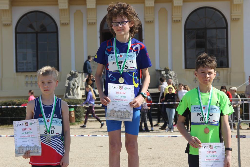 Hostitelem domácího republikového šampionátu v přespolním běhu mládežnických kategorií byl tentokrát Slavkov u Brna. Na rozdíl od loňského roku, kdy jsme na mistrovství vyslali pouze 6 děvčat byla naše účast letos rekordní. Poslední březnovou sobotu se v šesti mistrovských a dvou veřejných kategoriích pro přípravky představilo 16 našich atletů. A to se jich ještě dalších 7 přihlášených z různých důvodů, bohužel, na poslední chvíli omluvilo.