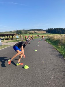 Současně s atletickými tréninky jsme plnili také sedmiboj. Trenéři se snažili být kreativní, tudíž nám (kromě standardních disciplín), vymysleli PŘEKVAPENÍ, jako jednu z disciplín. Prosím vás pěkně: slalom v pozici medvěda s miskou vody na zádech… Záhadná pointa byla v tom, aby se miska nepřevrhla. Inu, většina z nás do cíle suchá nedošla. Musím podotknout, že u některých případů jsme se všichni smáli tak, že to byl jeden z nejnáročnějších workoutů (ten smích, nikoli samotná disciplína, pozn. red.). Další záživná disciplína sedmiboje byl orinťák. ALE POZOR, všichni to překvapivě přežili, někteří ale přežívali 90 minut, jiní jen 30 minut.